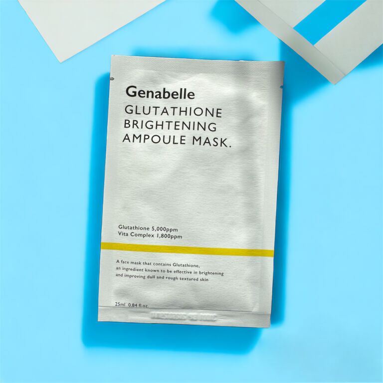 Genabelle Glutathione Brightening Ampoule Mask — тканевая маска, обогащённая глутатионом и активными компонентами для осветления кожи. Маска помогает выровнять тон, уменьшить пигментацию, придать лицу свежий и сияющий вид. Идеально подходит для тусклой кожи, уставшей кожи и кожи с неровным тоном.