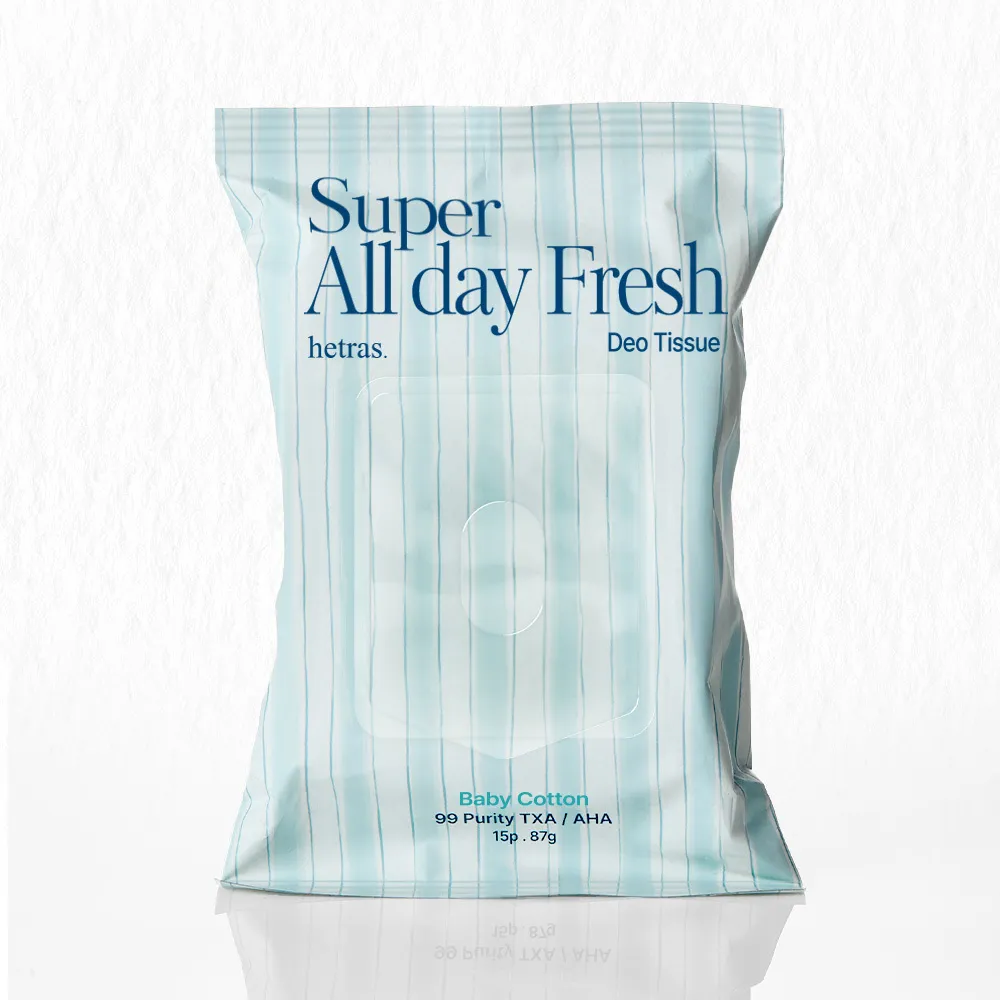 hetras Super All Day Fresh Deo Tissue — это инновационное решение для поддержания идеальной гигиены тела в любых условиях. Салфетки разработаны для тех, кто ценит свежесть, но не всегда имеет доступ к воде. Они не просто маскируют запах, а физически удаляют пот, бактерии и липкость с поверхности кожи. Благодаря входящей в состав тончайшей пудре, средство мгновенно абсорбирует влагу, оставляя кожу матовой, бархатистой и сухой на ощупь. Аромат Baby Cotton — это воплощение нежности: мягкие нотки детской присыпки, хлопка и свежевыстиранного белья. Это универсальный аромат чистоты, который дарит ощущение комфорта и спокойствия, не перебивая ваш основной парфюм.