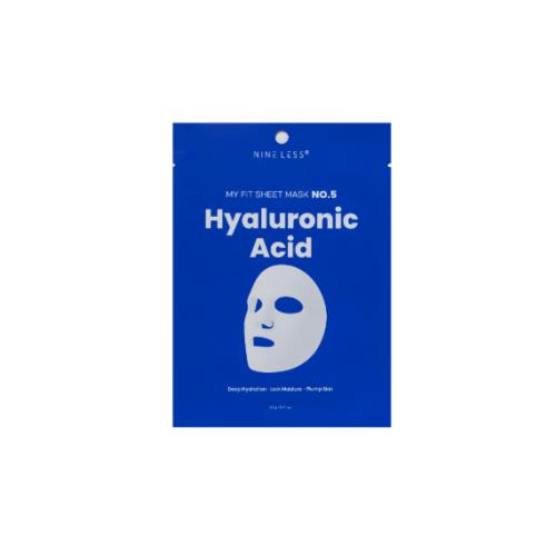 NINE LESS My Fit Sheet Mask No.5 Hyaluronic Acid — тканевая маска с активной формулой на основе гиалуроновой кислоты, которая обеспечивает глубокое увлажнение кожи, улучшает её эластичность и поддерживает естественный водный баланс. Маска плотно прилегает к лицу, способствуя эффективному впитыванию эссенции. Подходит для всех типов кожи, особенно для сухой и обезвоженной.