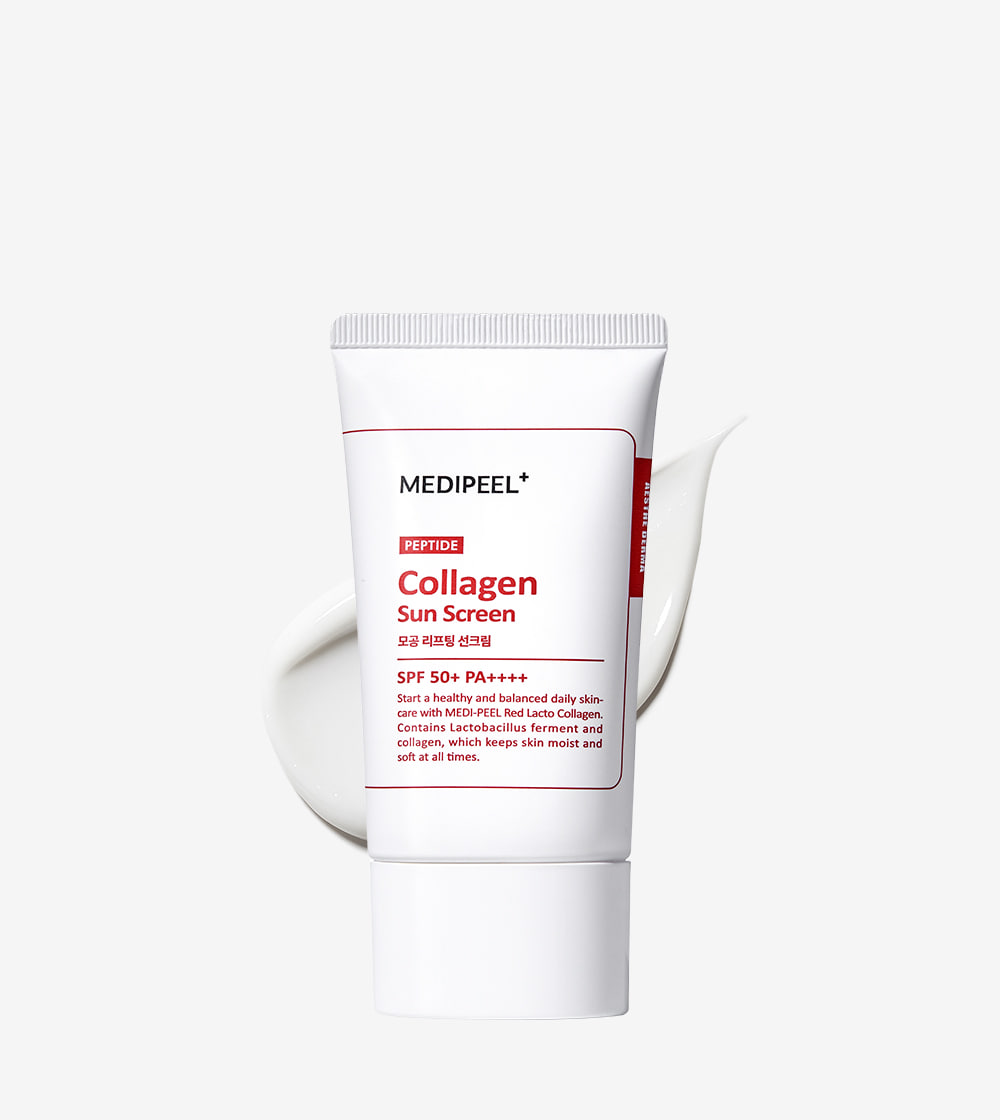 MEDI-PEEL RED LACTO COLLAGEN PORE LIFTING SUN CREAM — солнцезащитный крем с ухаживающей формулой: коллаген и лактобактерии (lacto) помогают улучшить упругость и текстуру кожи, а лёгкая финишная текстура маскирует и уменьшает видимость пор.