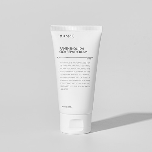 Pure:K Panthenol 10% Cica Repair Cream — интенсивный крем-восстановитель с высоким содержанием пантенола (10%), экстрактом Centella Asiatica и керамидами, разработанный для укрепления кожного барьера, интенсивного увлажнения и успокаивающего ухода за чувствительной, раздражённой или повреждённой кожей. Формула помогает быстро восстановить защиту кожи, уменьшить покраснение и сухость, а также обеспечивает мягкую и длительную гидратацию без ощущения тяжести.